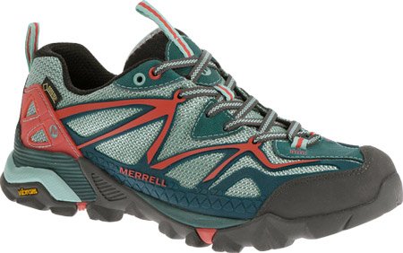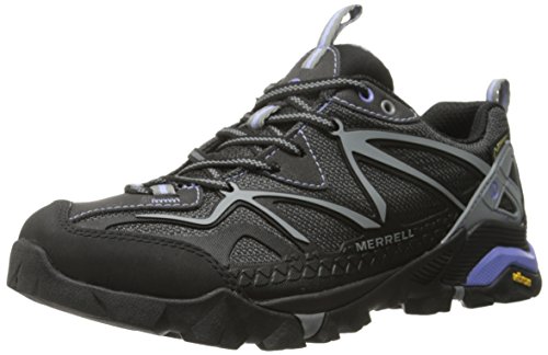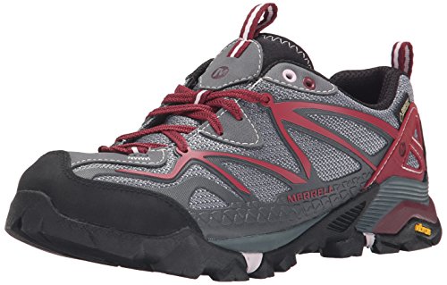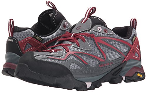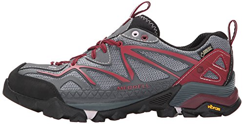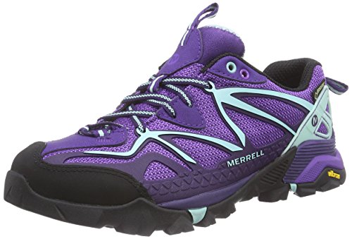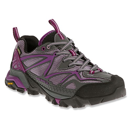 Take on the tough outdoors with the Merrell Capra Sport GORE-TEX®. The functional GORE-TEX® upper with Stratafuse construction ensures a waterproof and lightweight wear. This shoe comes with a traditional lace closure to let you customize the fitting. The outsole, made from Vibram® rubber, grips all kinds of surfaces. The UniFlyTM midsole and molded nylon arch shank of the shoe provides unwavering support. With Trail Protect pad provided, your foot gets added extra protection from trail injuries. The removable Ace single density footbed enables a comfortable all-day wear. Lined with M Select Fresh inside, the shoe efficiently regulates moisture and bacterial buildup.Feature