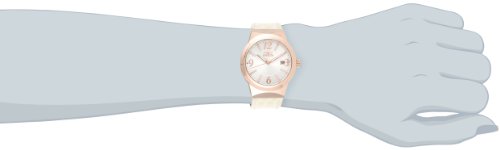-. Feature : Japanese quartz movement / Flame fusion crystal; 18k rose gold ion-plated stainless steel case; beige leather strap / Date window at 3:00 / Silver dial with rose gold tone and white hands and hour markers and rose gold tone Arabic numerals; luminous / Water resistant to 165 feet (50 M): suitable for swimming and showering