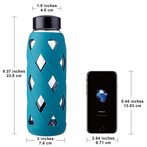 27oz Glass Water Bottle - MIU COLOR BPA Free Clear Borosilicate Glass Bottle with Silicone Sleeve - Large Size Glass Flask for Outdoor Sports Drinking and Home Office