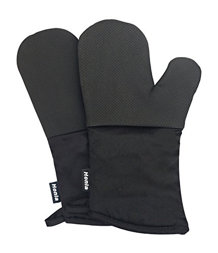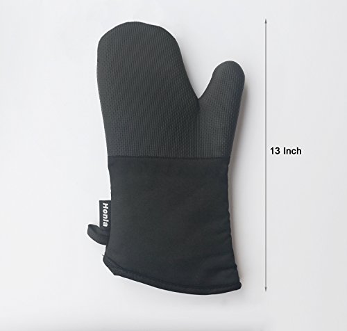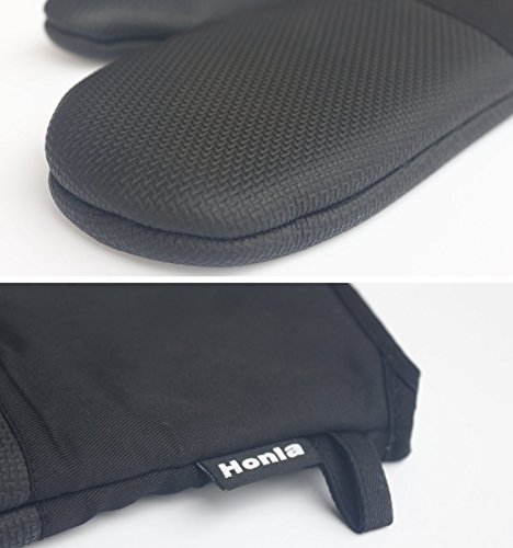 Neoprene Oven Mitts - Heat Resistant to 500° F,1 Pair of Non-Slip Kitchen Oven Gloves for Cooking,Baking,Grilling,Barbecue Potholders,Black - Honla