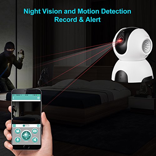 PAN/TILT/ZOOM FUNCTION: Combined with 350°horizontal & 60° vertical rotation range, creating a great coverage. HD optic lens and 720P resolution let your smartphone screen extremes with clear picture. With 4 times digital zoom, it is able to see more clearly of every detail.