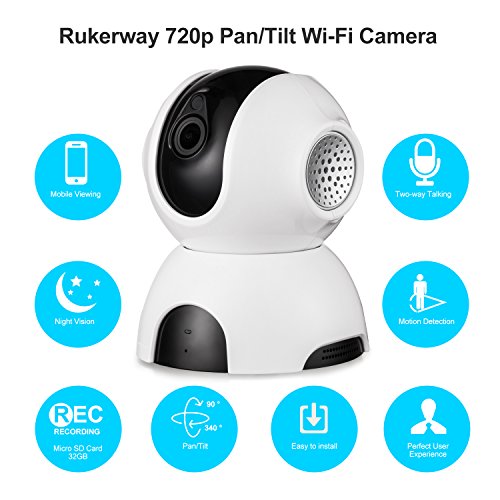 Rukerway Wireless IP Camera, Baby Monitor With Two-Way Audio, Night Vision 720P IP Camera, Motion Detection Alert, Home Security Surveillance Camera Indoor App Camera for Pet, Senior And Property