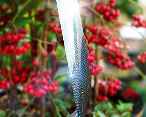 ✔ Scare away all types of birds and pests with multi-direction bright light from the highly reflective shiny diamond patterns and noise made by the metallic material when twisting in the wind.