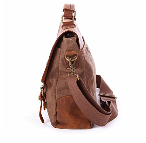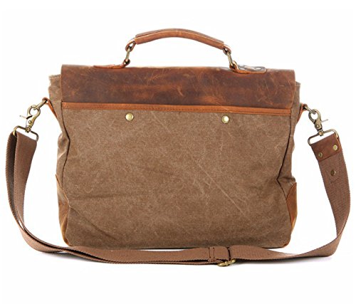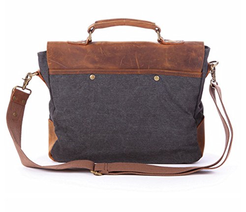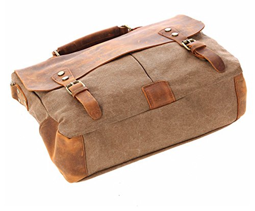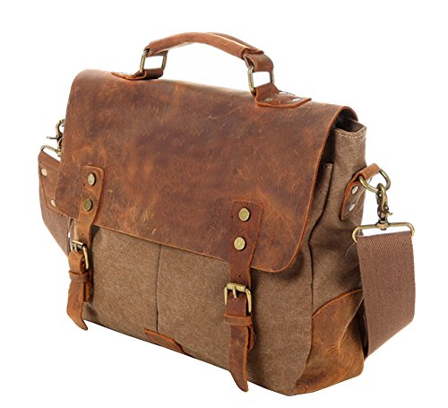 -. Title : 14Inch Laptop Tablet Messenger Bag,Berchirly Unisex Fashion Canvas Travel Briefcase Shoulder Bag with Genuine Leather Trim for Men Women