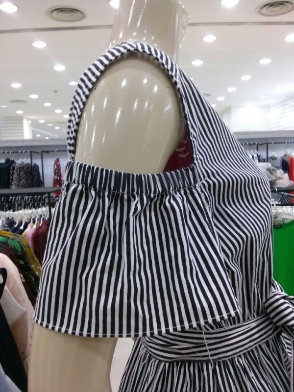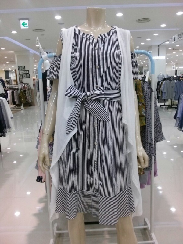 면소재의 스트라이프원피스인데요..앞단추로 오픈과 클로징 하시구요..