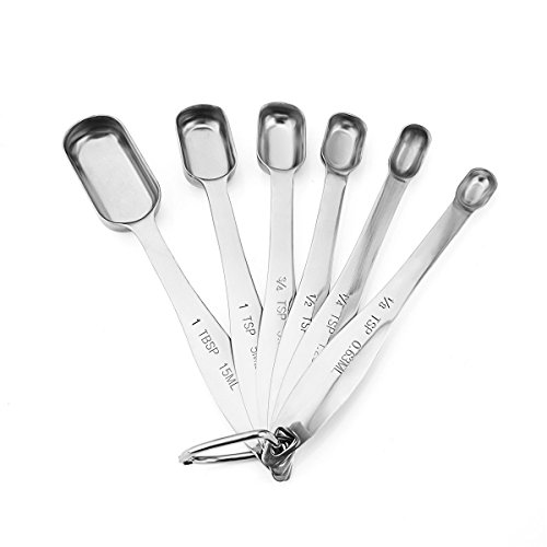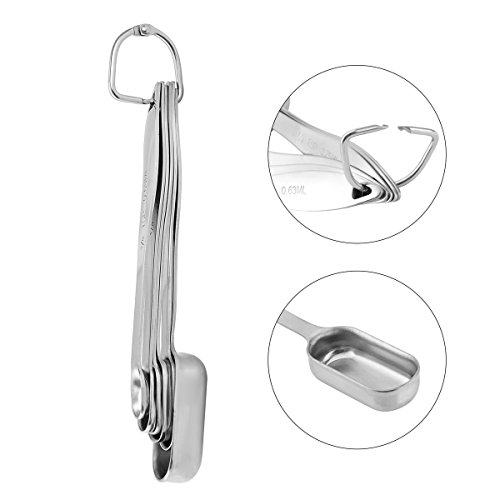 Maxracy 6 Set Stainless Steel Narrow Shape Measuring Spoon with Detachable Ring for Kitchen Cooking & Baking to Fit in Spice Jars