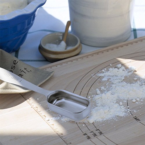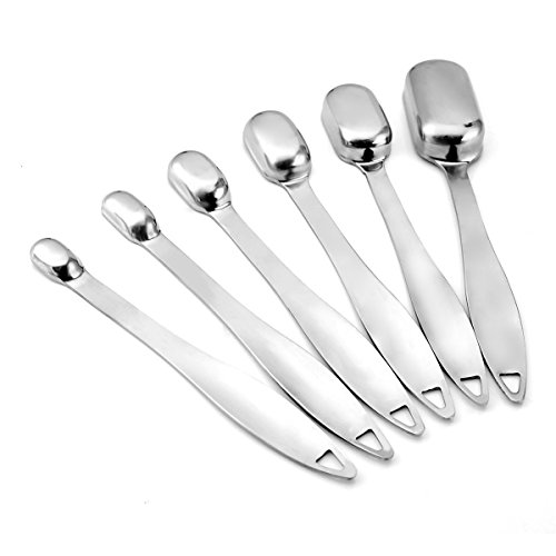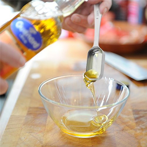 - 2.Thoughtful Design--The narrow head and longer handle can reach into small containers deeper. Besides, the precision engraved measurement gives you an accurate decision and will not wear off.
