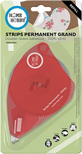 - Includes a refill cartridge with 150 feet of permanent double-sided white adhesive strips