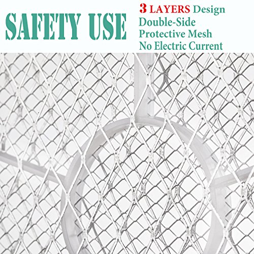 - ❅SAFE TO TOUCH - Press the activation button on your bug zapper racket, and an indicator light glows. If you or others touch this powerful pest control tool while it’s electrified, a triple-layer safety mesh protects you. Note: Forbid to plug your fingers into the net.