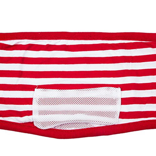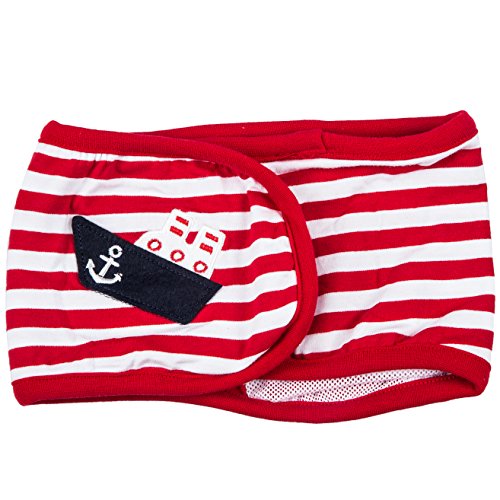 -. Feature : SIZE: S - waist 7.8" - 11", Size M - waist 11.8" - 21.7", Size L - waist 19.7" - 25.6" / NOTE: When measured don't be too tight,small dogs appropriate to relax 0.5 ", large dogs relax 0.8" -1.2" / Dog belly bands are made to prevent dogs from marking their territory when out and about. These dog belly bands or say pet diapers are not intended to absorb pee, but to inhibit peeing. For urine absorption, just add a panty liner or tissue / Dog belly bands are not only a good training aid but they also work as an anti-breeding aid for male dogs that are not neutered. These dog diapers male are also ideal for travel in the car or on a plane or in dog friendly stores and restaurants. They also provide temporary aid to dogs with incontinence problems. Best of all, they deliver peace of mind with your beloved companion, even if he's not perfect in manners. / PACKAGE INCLUDES:1*Blue dog belly band for male,1*Red dog belly band for male