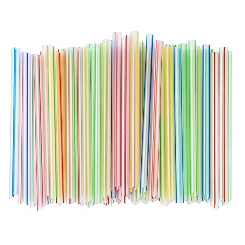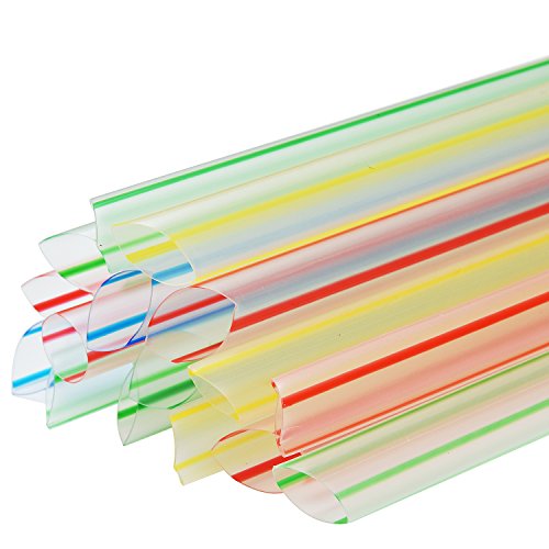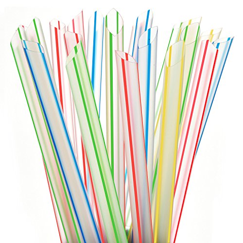 Extra Wide Fat Boba Straws, 1/2" Jumbo Plastic Striped Smoothie Straws for Bubble Tea and Milkshake, Pack of 100
