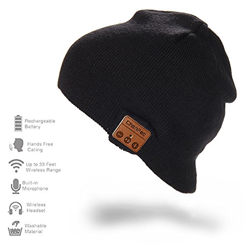 CFZC Bluetooth Beanie Hat Cap Wireless Bluetooth Headphone Headset Earphone soft warm with stereo speaker hands-free for man and woman outdoor sports gift(color black)