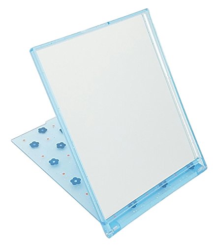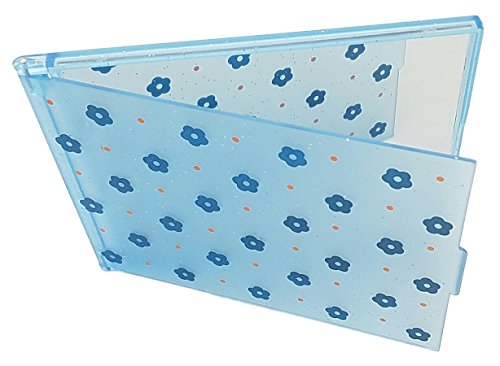 Polka Dot Flower Compact Folding Stand Mirror | Incredibly Cute & Portable | Perfect Make-Up Mirror, especially for Teen Girls | Available in Four Colors (Blue with blue flowers)