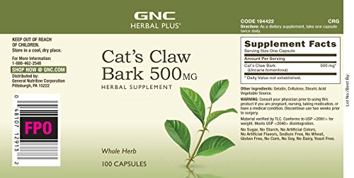 -. Title : GNC Herbal Plus Cats Claw Bark 500mg