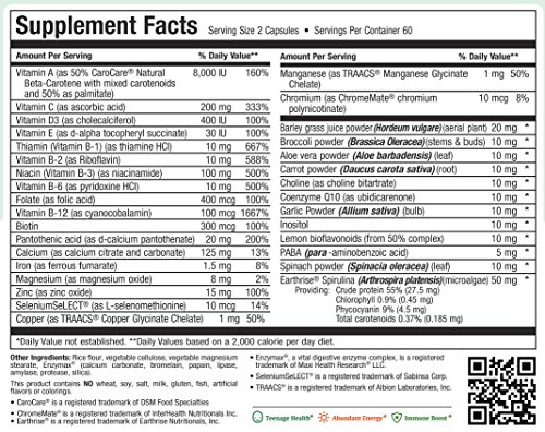 What about fruits and vegetables, you ask? Now you can get your teen to take all these with just two capsules per day! They include: barley grass powder, broccoli powder, carrot powder, papaya fruit powder, bee pollen powder and spinach powder.