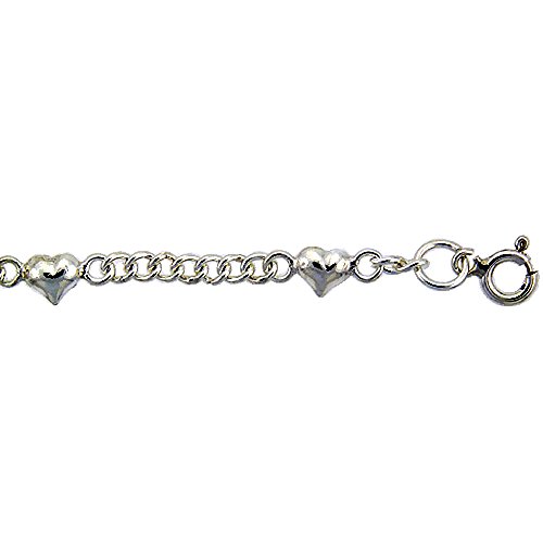 -. Title : Sterling Silver Anklet with Hearts Curb Chain, fits 9 - 10 inch ankles