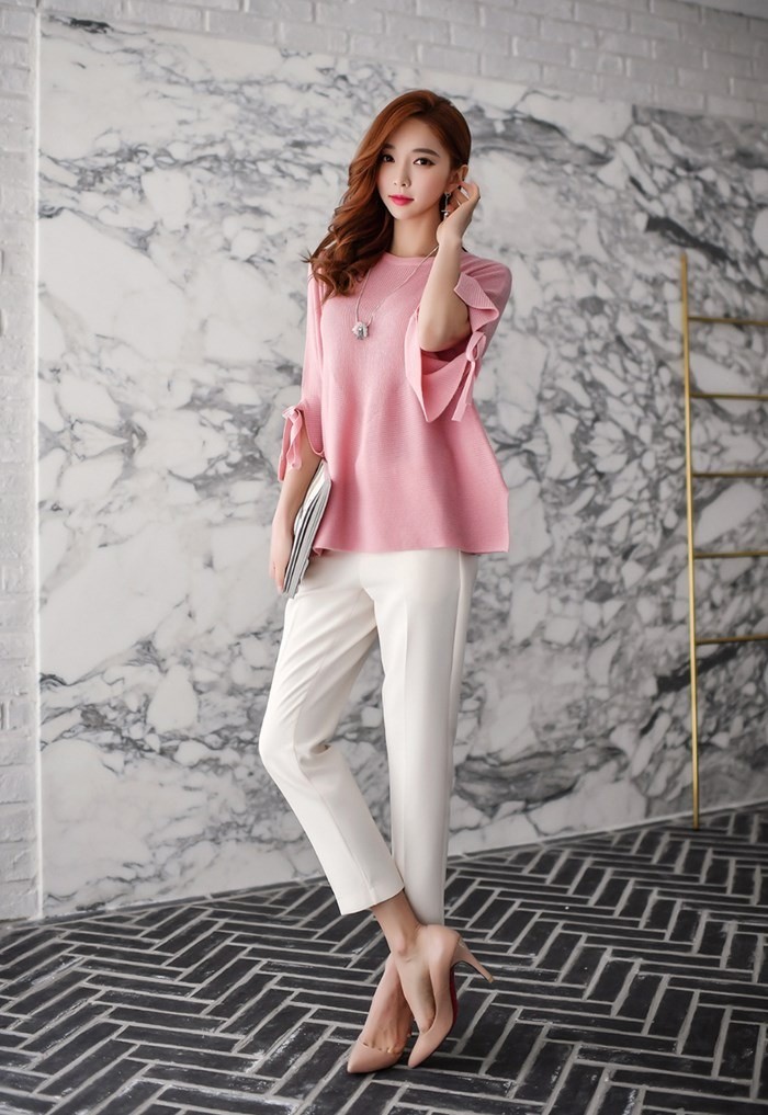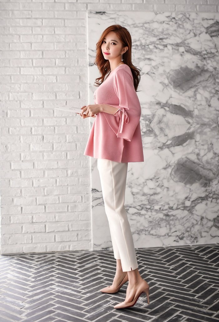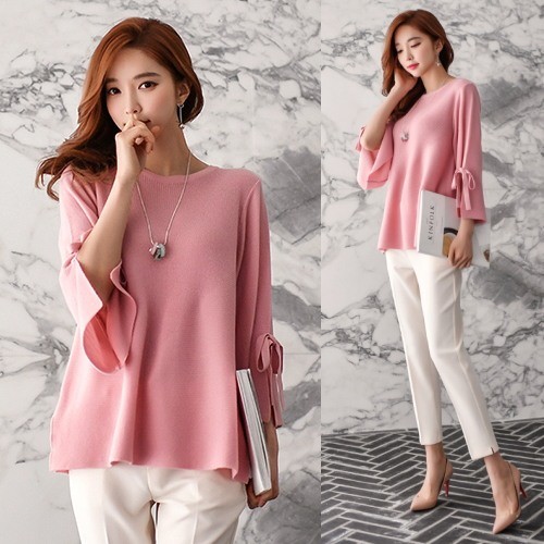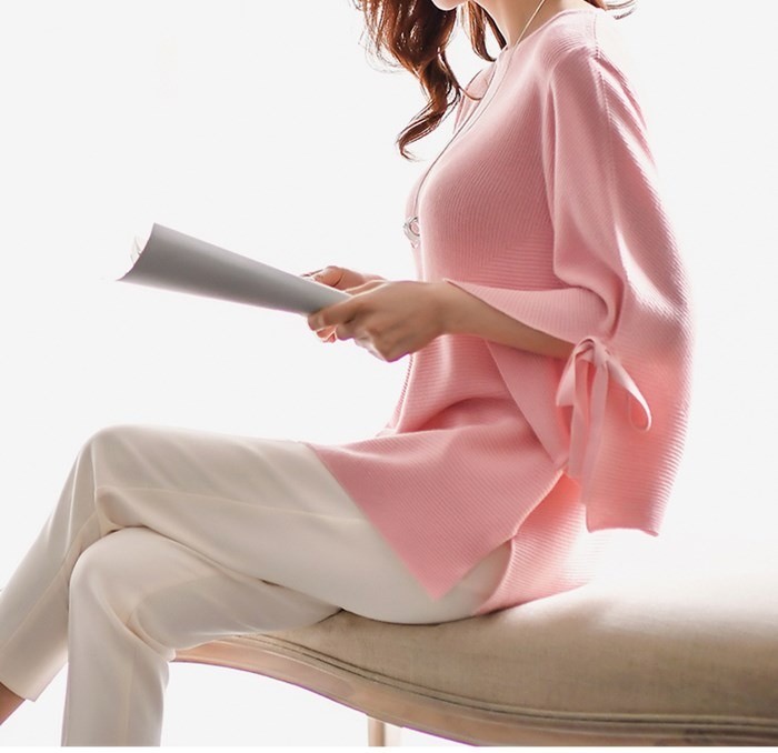 商品名:ニット 無地 7分袖 トップス