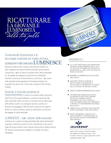 -. Binding : Misc. -. Brand : Jeunesse Luminesce Advanced Night Repair Cream -. EAN : 0794866505280 -. Feature : Reduces the appearance of fine lines and wrinkles in as little as two hours / Increases intracellular hydration by 85% in just two weeks / Protects against free radical damage† with the LUMINESCETM skin vitamin complex / Stem cell growth factors restore luminosity and firmness in the skin / Diminishes the appearance of age spots and evens skin tone -. Label : Jeunesse -. Manufacturer : Jeunesse -. Model : 30ml - (1oz) -. MPN : na -. PackageQuantity : 1 -. PartNumber : na -. ProductGroup : Beauty -. ProductTypeName : BEAUTY -. Publisher : Jeunesse -. Studio : Jeunesse -. Title : Jeunesse Luminesce Advanced Night Repair Facial Anti-aging Skin Care Cream 1oz - 30ml. This Night Cream Helps with Natural Hydration, Self-repair and the Reduction of Wrinkles and Signs of Aging By Restoring Moisture. -. UPC : 794866505280