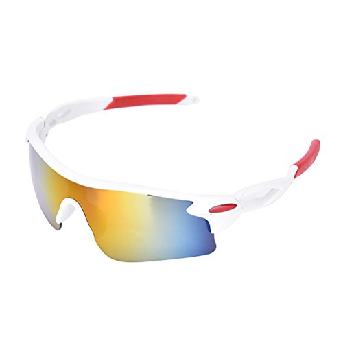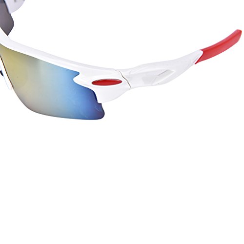 -. Feature : Suitable for driving,fishing,climbing,cycling and others outdoor sport / The frame is made of TR90 / Lens are made of high quality PC material / 100% UV400 Protection Coating, block 100% of UVA, UVB and UVC rays, and harmful blue light / Sports cycling glasses are designed to reduce the glare from surfaces like water, snow, and glass