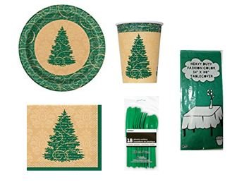 Christmas Elegant Party Packages For 8 Guests - Includes Dinner Plates,Napkins,Cups,Cutlery & Table Cover - 51 CT