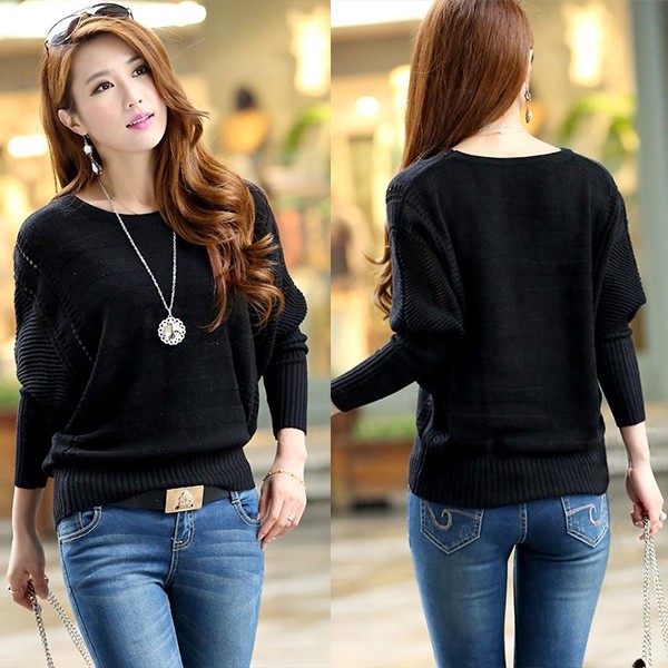 商品説明 ドルマン袖がかわいい丸首ニット。