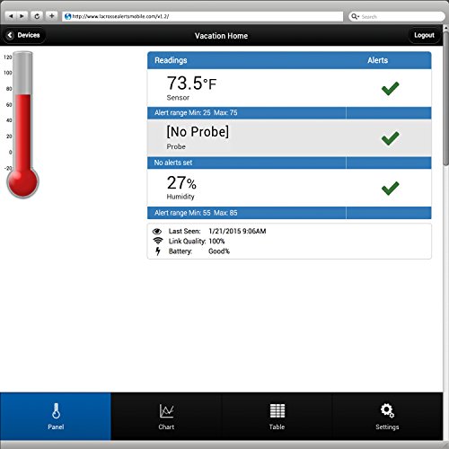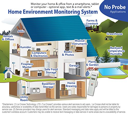 -. Binding : Misc. -. Brand : La Crosse Technology -. Color : Beige -. EAN : 0757456087313 -. Feature : Measures ambient air temperature and humidity / Transmits to gateway in 200 ft. range / Receive e-mail and text alerts for temperature and humidity, connection loss and low battery / Internet and network router required (not included) / Requires two AAA alkaline batteries (not included) / Text and E-mail Alerts first 3 months FREE; 1 year subscription available after for $11.88 yearly ($0.99 per month) -. Label : La Crosse Technology -. Manufacturer : La Crosse Technology -. Model : D111.E1.WGB -. MPN : 926-25100-WGB -. PackageQuantity : 1 -. PartNumber : 926-25100-WGB -. ProductGroup : Home -. ProductTypeName : HOME -. Publisher : La Crosse Technology -. Studio : La Crosse Technology -. Title : La Crosse Alerts Mobile 926-25100-WGB Wireless Monitor System with Temperature & Humidity -. UPC : 757456986036 -. Warranty : 1 limited warranty