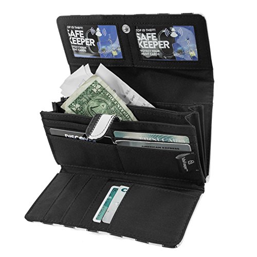 RFID BLOCKING TECHNOLOGY: Every Mundi RFID blocking clutch wallet is manufactured with RFID blocking technology. Now you don't need to worry about thief's steeling your credit cards, debit cards or driver's license information. Wireless identity theft, also known as contactless identity theft or RFID identity theft is a growing concern as more cards are enabled with RF-enabled technology. Be sure you are protected from these criminals and thieves with our RFID wallets for women. Our RFID Blocking wallet with checkbook storage will secure your Identity and personal information from RFID scanning devices, skimming devices and electric pickpockets.