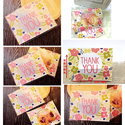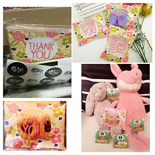 SarSean 200pcs THANK YOU Self-Adhesive OPP Bags for Candy Biscuits Party Supplies (4" x 6")