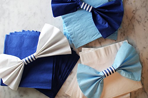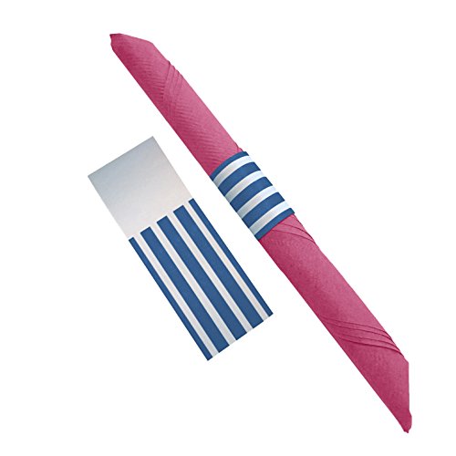 - CHIC CUSTOM DESIGN Why use just plain paper napkins when you can add these custom blue and white striped napkin bands and add a chic and elegant touch to your table decorations. Each partyware kit includes 40 self-adhesive napkin rings, napkins not included.. They will add the perfect touch to your Boy’s Birthday Party, Nautical Theme Party, Gender Reveal, Communion, Bachelor Party or any party theme, the ideas are endless.