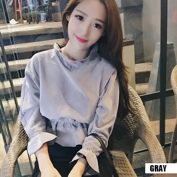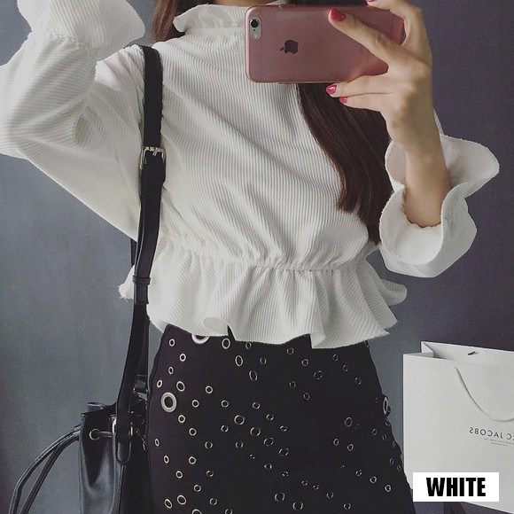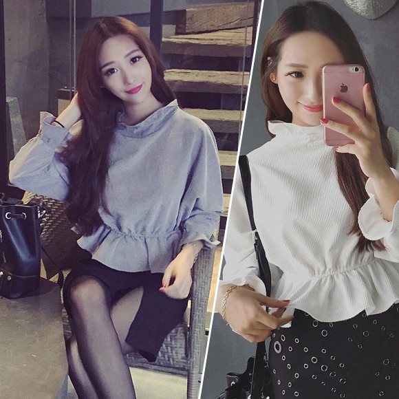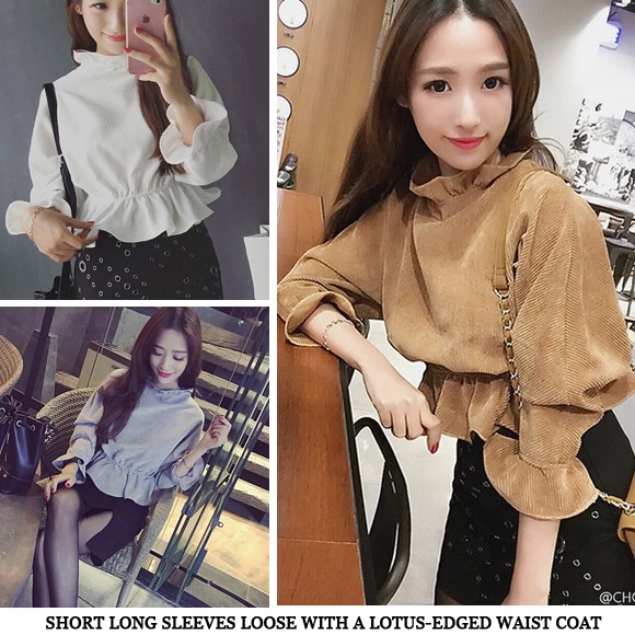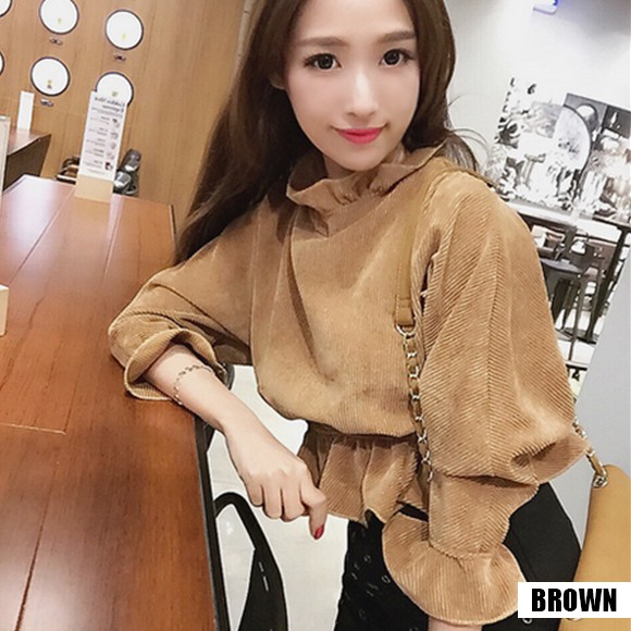 ぺプラム風の裾やフリル襟、バルーンスリーブがイマドキな華やかレディーストップスです♪
