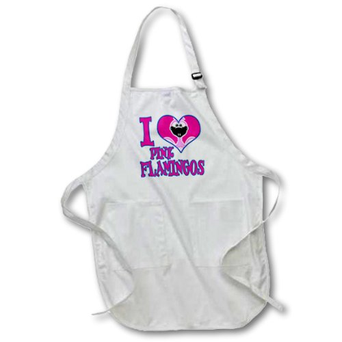 3dRose apr_102134_4 I Heart Love Flamingos Cartoon-Full Length Apron, 22 by 30-Inch, Black