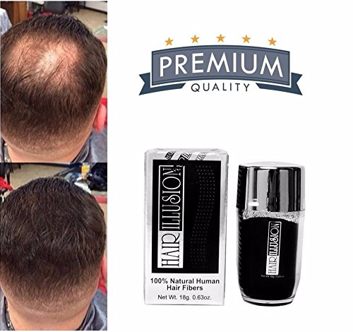 Hair Illusion hair fibers are a Cosmetic Product Made From 100% Real Human Hair That Allows Men And Women To Conceal The Appearance Of Thinning Hair And Bald Spots, Giving The Impression Of More Hair. Hair Illusion Does Not Re-Grow Hair Or Stop Hair Loss; Rather, It Is Only a Cosmetic Product That Hides Baldness. Hair Illusion Is a Quick, Easy And Painless Way, To End The Suffering And Replace It With a Full Head Of Hair! Hair Illusion Won'T Come Off In The Wind Or With Perspiration. To Remove The Product Simply Wash Out With Shampoo. For a Extra Hold Apply a Light Mist Hair Spray. To Apply Hair Illusion Simply Shake The Bottle Liberally Over Thin And Bald Areas. This Will Release Thousands Of Microscopic Color Matched Fibers Which Bond To Your Scalp Or Thin Hair With Magnetized Static Electricity. Hair Illusion Is Different Than Similar Products toppik, caboki, Because It'S Made From 100% Real Human Hair. Its Not Made From Keratin, Cotton &Amp; Rayon Like Competitors. You Will Have a Undetectable Natural Appearance Because It Is Real Hair.