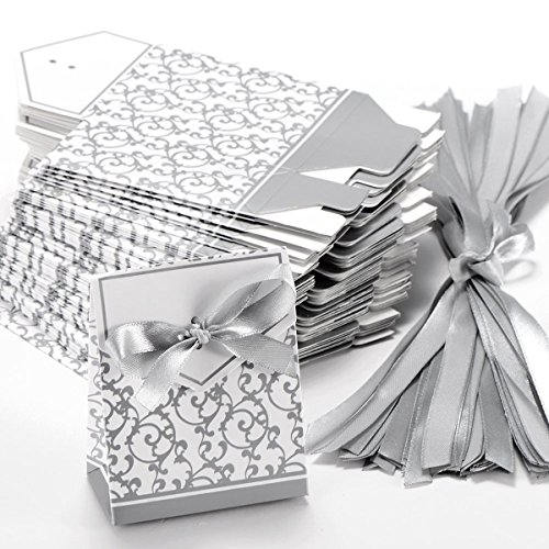 Davias 50pcs Bridal Wedding Party Favor Gift Boxes with Ribbons Candy Boxes (Silver)