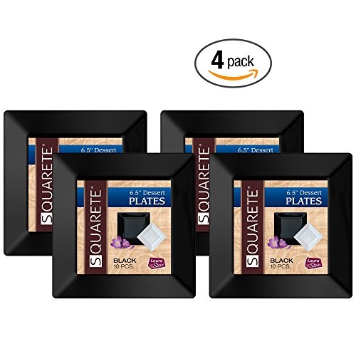 Squarete 6.5'' inch Black Dessert Plates Heavy Duty Plastic Elegant Disposable 10 Dessert Plates Per Package Pack Of 4