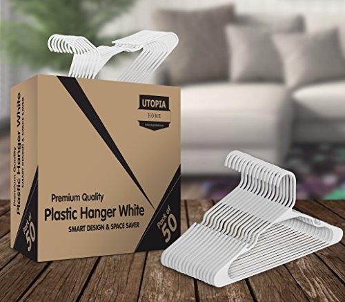 -. Binding : Kitchen -. Brand : Utopia Home -. Color : White -. EAN : 0817706024038 -. Feature : Pack of 50 plastic hangers measuring 42 x 23 x 0.6 centimeter each / Made from very strong and durable plastic allowing it to last for long / Great for hanging shirts, t-shirts, formal wears, blouses etc / It's slim design takes minimal closet space and portray a very organized and tidy appearance -. IsAutographed : 0 -. Label : Utopia Home -. Manufacturer : Utopia Home -. Model : UH0146 -. MPN : UH0146 -. PackageQuantity : 50 -. PartNumber : UH0146 -. ProductGroup : Home -. ProductTypeName : HOME -. Publisher : Utopia Home -. Studio : Utopia Home -. Title : White Plastic Hangers - Pack of 50 - Durable & Slim - by Utopia Home -. UPC : 817706024038