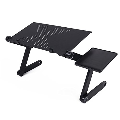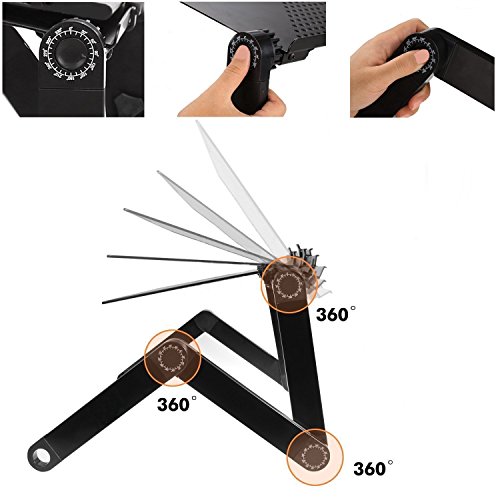 -. Feature : ★ADJUSTABLE FOR OPTIMAL COMFORT - Work comfortably in the comfort of your bed with our exclusive foldable laptop stand. This ultimate portable stand is fully adjustable to your needs so you can work, write, study on your bed, sofa or anywhere comfortably. It easily adjusts up to 18" inches height (480mm) and features three branches that function as flexible legs to easily accommodate the desk / ★PREMIUM QUALITY - We made this portable desk with high quality aluminum and ABS fabric material which keep your laptop cool. It is sturdy, lightweight, and durable to last a lifetime. It rotates 360 degrees and lock in place at various angles with the locking button. You can completely collapse the laptop stand for portability to carry anywhere or store under your bed when you don't need it / ★MULTI-FUNCTIONAL - Our portable laptop table can be used for standing desk, projector, book tray, writing desk, TV dinner tray, tablet holder, notebook stand, sketchpad, gaming table, laptop tray and more. It weighs 3.3 pounds and can support up to to 33 pounds / ★READY TO USE - No assembly is required. The ergonomic design allows you to work anywhere whether it's in the bed, sofa, couch or outdoors. It makes the perfect present for someone special like your mother, father, brother, sister, friends and loved ones. Buy as a gift for holidays, birthday, Christmas gift and any other occasion / ★100% SATISFACTION GUARANTEED! - We are confident you will love your adjustable vented laptop table. If you have any questions, please contact us and we will resolve it as soon as possible.