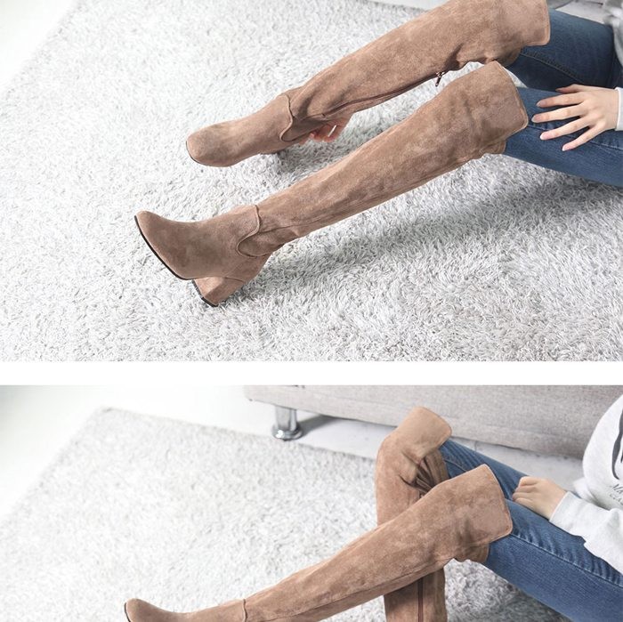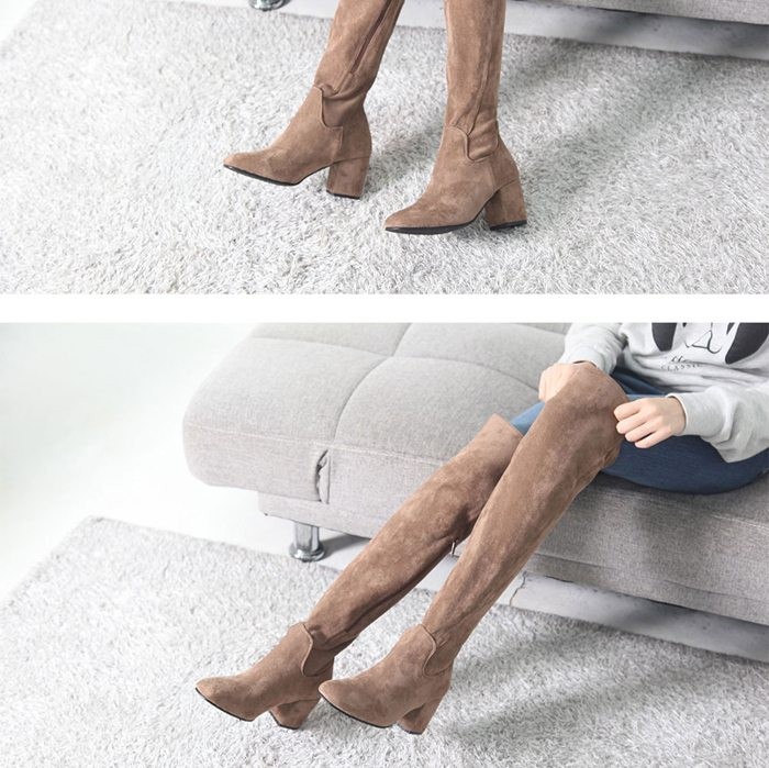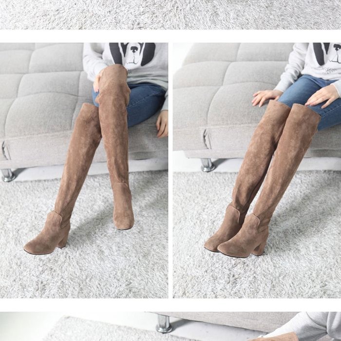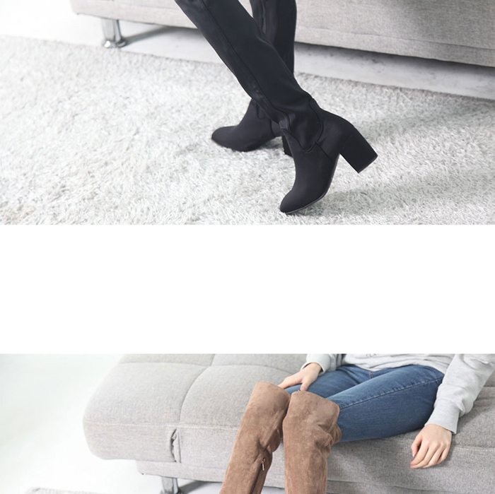 商品名:ロングブーツ レディース ニーハイブーツ スエード調 太ヒール チャンキーヒール 2017 秋冬 ファッション 靴 婦人靴