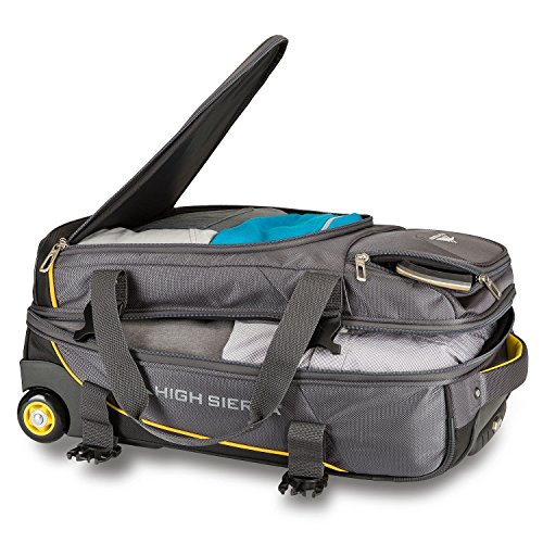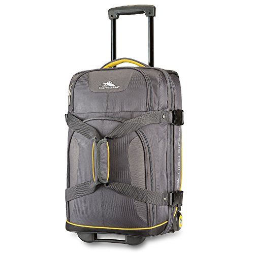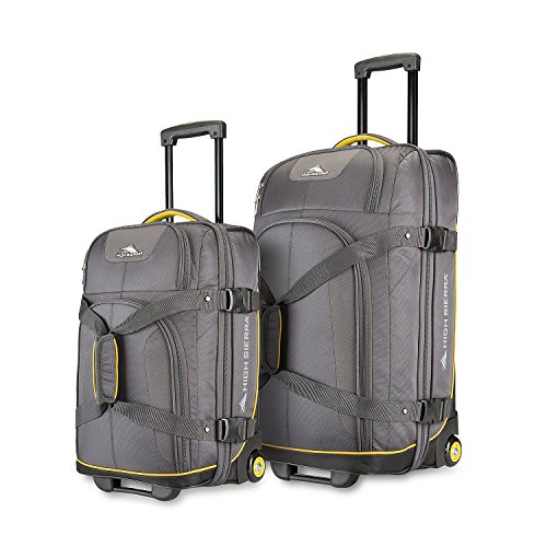 -. Brand : High Sierra -. Color : Grey with Sun Yellow Trim (Mercury/Black/Sunflower) -. Department : unisex-adult (lage only) -. EAN : 0040176483849 -. Feature : Large front compartment with front-load access / Easy-access front zippered pocket / Durable webbing handles with comfortable handle wrap / Zippered divider panel between upper and lower compartments / Oversized and corner mounted skate-style wheels -. MPN : 887444 -. PackageQuantity : 1 -. PartNumber : 887444 -. ProductGroup : Apparel -. ProductTypeName : LAGE -. Size : 2 pc -. Title : High Sierra 2 Piece UP.R.Ight Wheeled Duffels, Grey with Sun Yellow Trim -. UPC : 040176483849