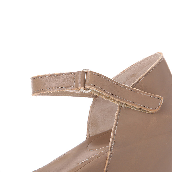 벨크로 여밈의 웨지 샌들로 굽 까지 가죽으로 싸여있는 형태의 샌들입니다.