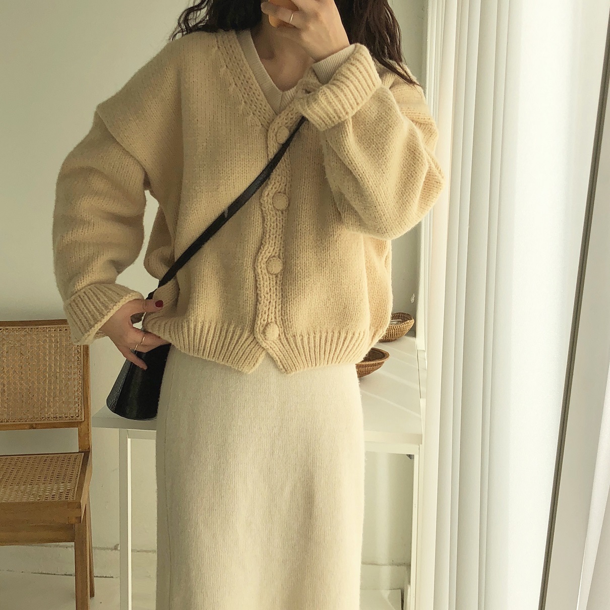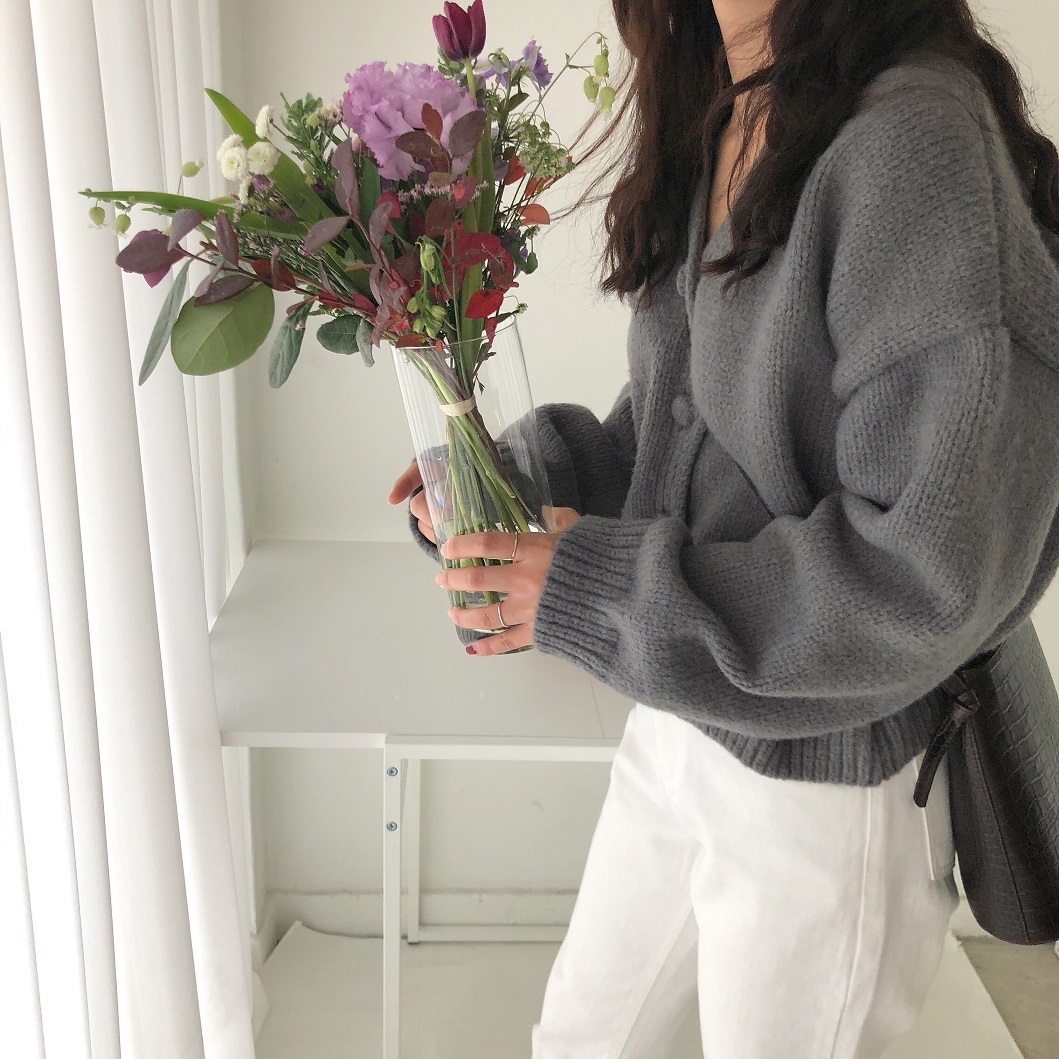 柔らかな雰囲気がフェミニン、ゆったりとしたサイズ感が魅力的なニットカーディガン。