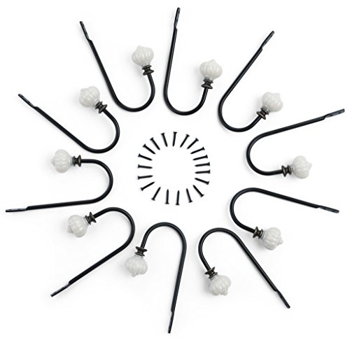 10pc Black Iron Hook Set with Elegant Jewel - Add A Touch Of Class To Your Beautifully Furnished Home - Equipped with 20 17mm Screws For A Strong, Sturdy Hold