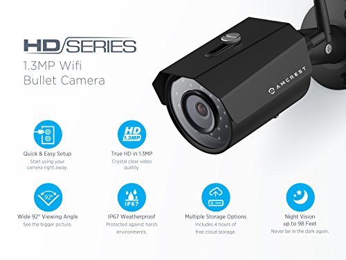Amcrest IPM-723B Outdoor 960P 1.3 Megapixel (1280TVL) WiFi Wireless IP Security Bullet Camera - IP67 Weatherproof, 1.3MP (1280 x 960) (Black)