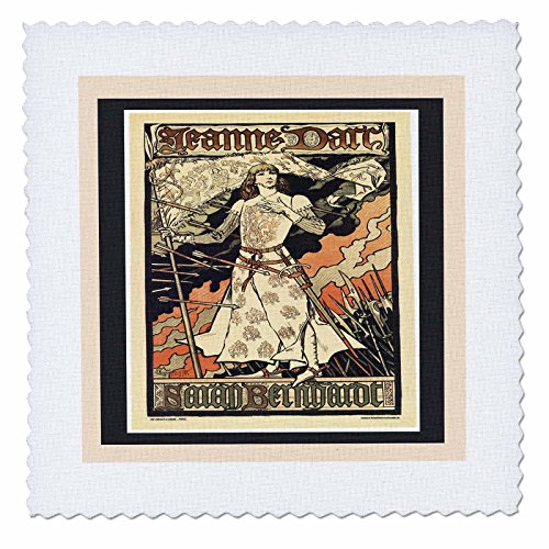 3dRose qs_43806_2 Joan of Arc Art Nouveau Poster in Peach n Black Frames Quilt Square, 6 by 6-Inch