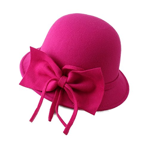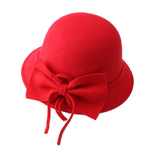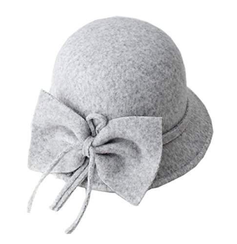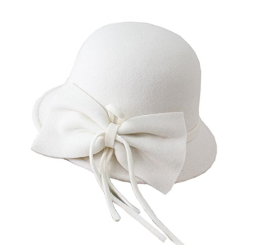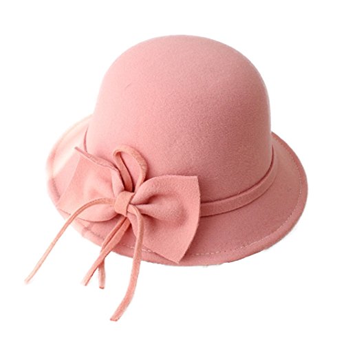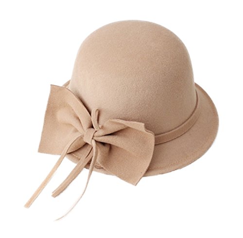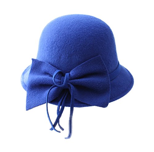 FUNNY365 Women's Bowknot Felt Cloche Bucket Hat Dress Winter Cap Fashion