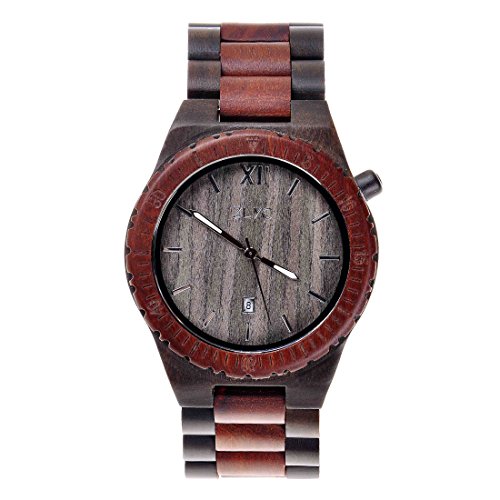 -. Title : ZLYC Men Natural Sandalwood Japanese Quartz Calendar Function Wooden Watch with Gift Box, Red Black