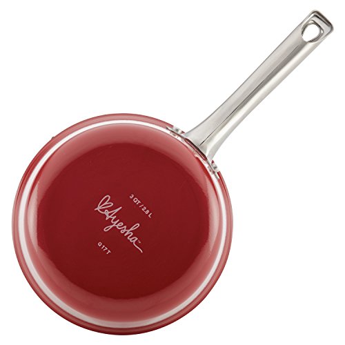 Aspire to your next level of creative kitchen cool and simplify the pursuit of your home chef passions with the Ayesha Curry Home Collection 3-Quart Porcelain Enamel Nonstick Covered Saucepan. The Ayesha Curry Home Collection puts inspiring, high-quality cookware in easy reach for creating flawless traditional favorites, cooking up fun and easy weeknight family dinners or making a signature meal for brunches, date night, or holiday get-togethers. This 3-quart porcelain enamel saucepan features just the right accent of chic style that's perfect for pulling together Ayesha's Sweet and Savory Shrimp and Grits or a comfort-food friendly helping of Five Ingredient Pasta. Constructed from fast- and even-heating aluminum with stylish hard porcelain exteriors, the saucepan features a sleek, flared silhouette in gorgeous, Instagram-ready color. More than just a pretty pan, this high-quality cookware is heat safe to 500 Degree F and features a double-riveted stainless steel handle and shatter resistant glass lid for wielding maximum creativity and versatility in the kitchen. The glass lid locks in heat and moisture, and a diamond-textured surface with premium-grade nonstick coating provides long-lasting, effortless food release, enhanced browing and easy cleanup of even the gooey and creamy recipes like Ayesha's Carolina Chowder. Plus, this Ayesha Curry kitchenware helps support No Kid Hungry to provide up to 500,000 meals to children in need. Learn more at nokidhungry.org/onedollar. Life is short, so get saucy and let your simple and sophisticated recipes shine with the Ayesha Curry Home Collection 3-Quart Porcelain Enamel Nonstick Covered Saucepan.Feature
