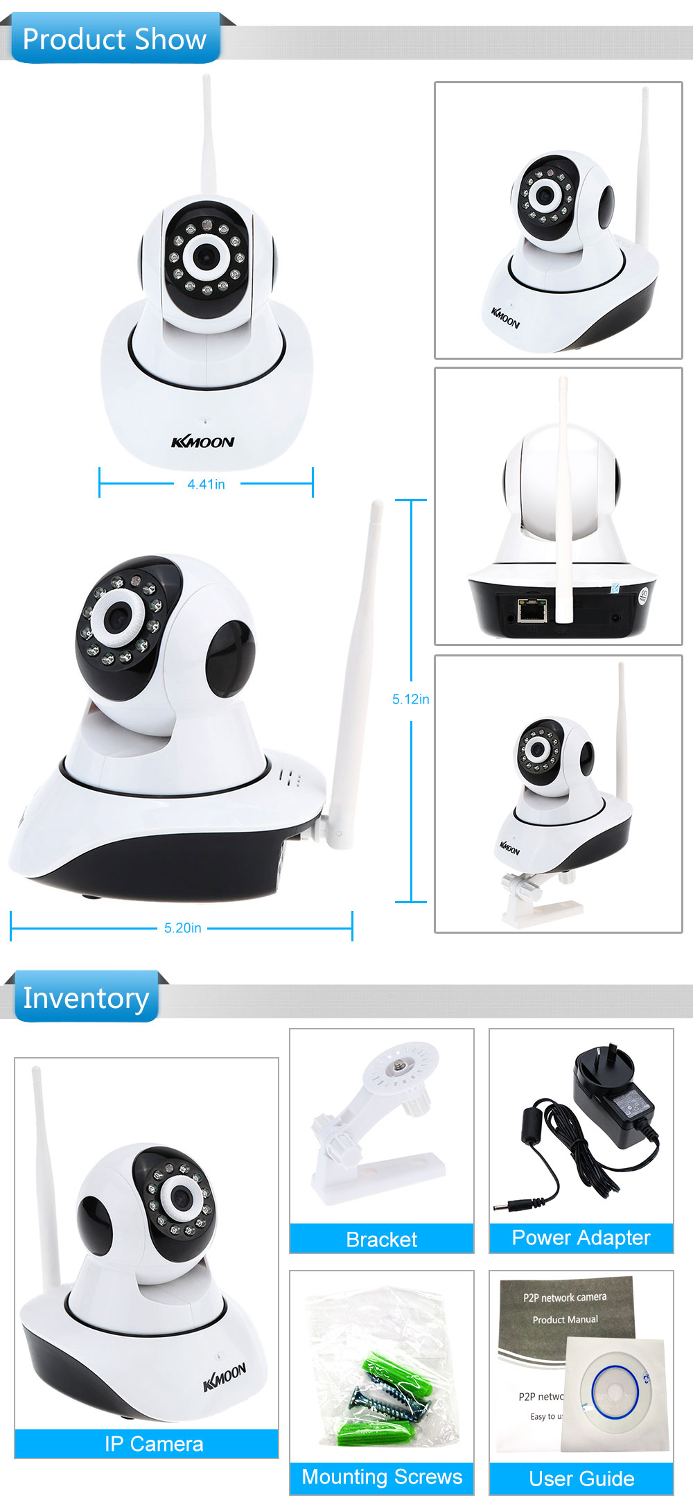 | PnP | Plug !#!amp!*! Play, 99% penetration rate, Easy to setup: 1, connect the network cable and power adapter. 2, install APP, scan UID code to add camera. ?3, Click online camera to view the camera. |