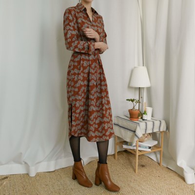 전체적으로 잔잔한 패턴처리 된 롱 원피스 소개해드려요. 기본 카라 디자인과 허리끈으로 핏을 잡아줄 수 있어 다양하게 레이어드 가능한 아이템이예요. 롱한 기장으로 니트나 가디건과 매치해서 착용하셔도 예쁩니다 :-) 폴리 소재로 부드럽고 찰랑 거리는 느낌으로 연출되어요. 약간 오렌지브라운 느낌의 벽돌 컬러와 기본 네이비 두가지 컬러 구성입니다. 모델은 벽돌 착용하였습니다. 아이보리,화이트 컬러는 교환, 환불 불가하오니 신중한 구매 부탁드려요. MODEL / 166cm , 55size , S or 26 , SHOES_240