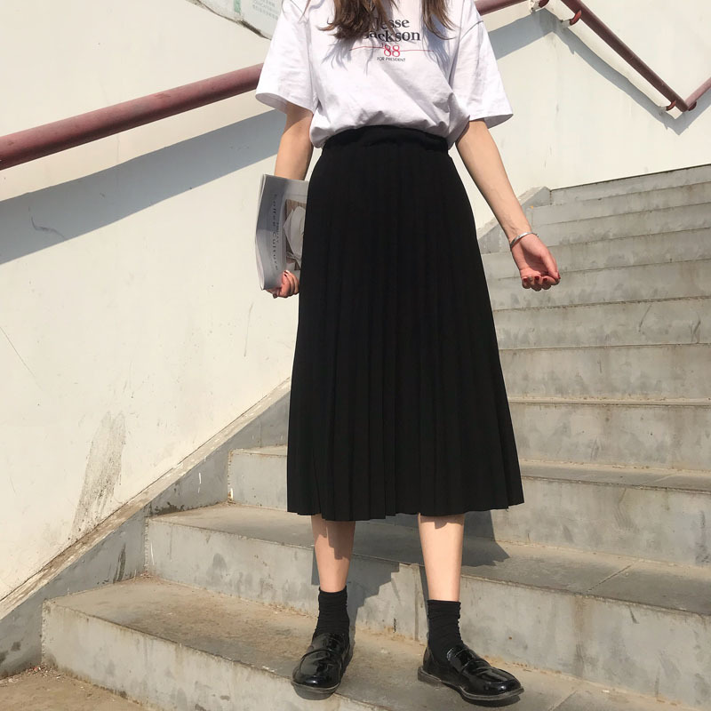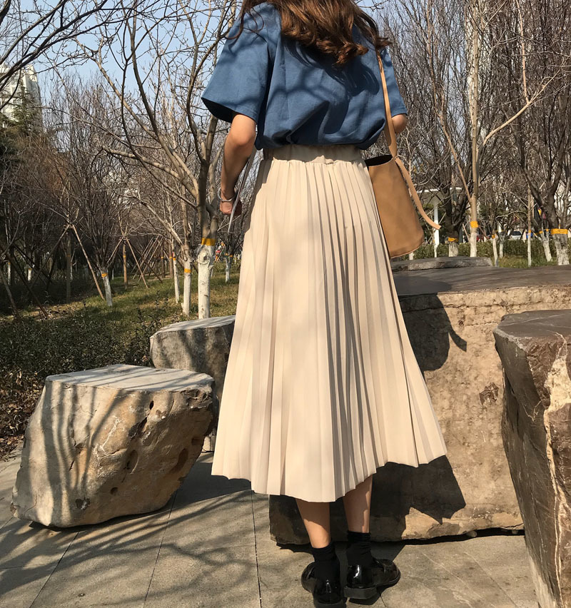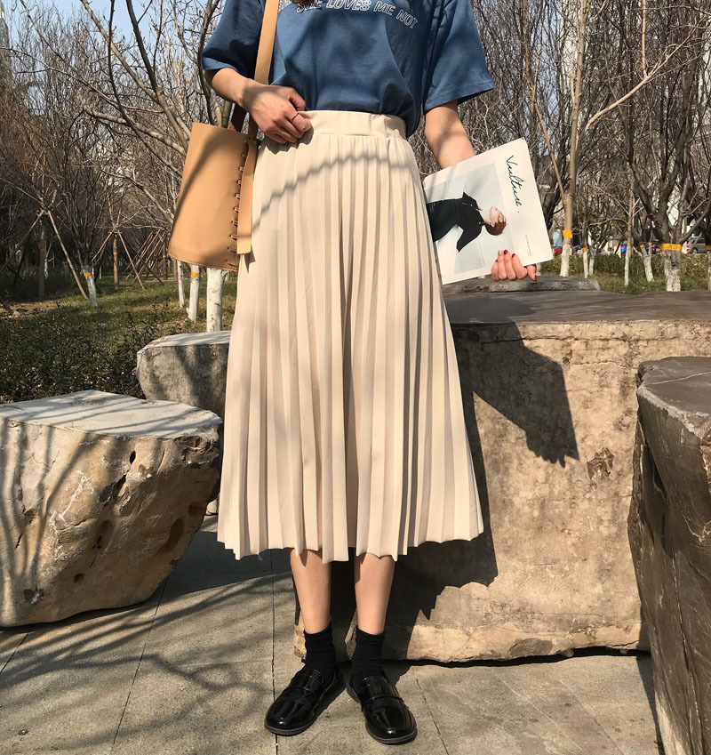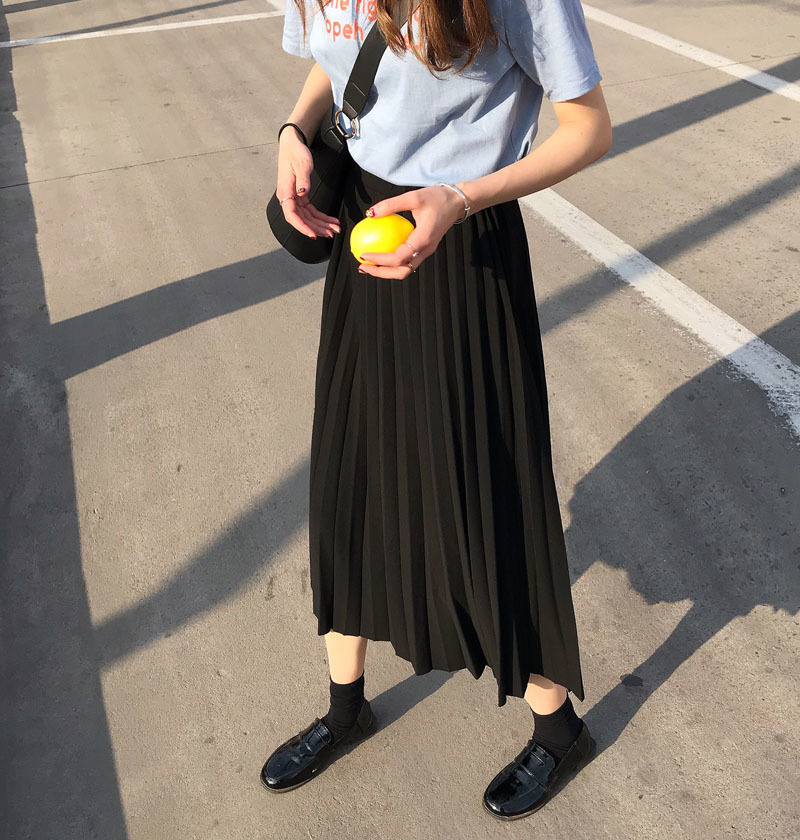 シンプルデザインで、女性らしいふんわりとした雰囲気のロング丈プリーツスカートです。