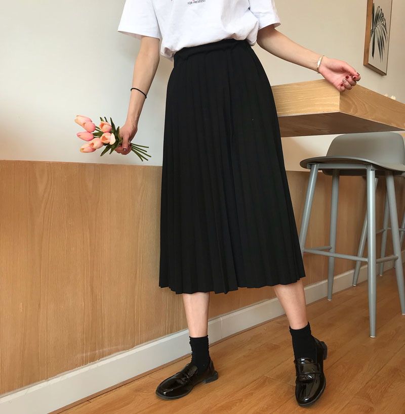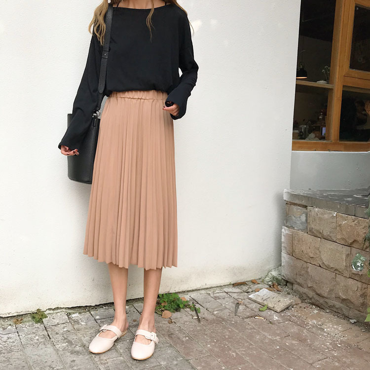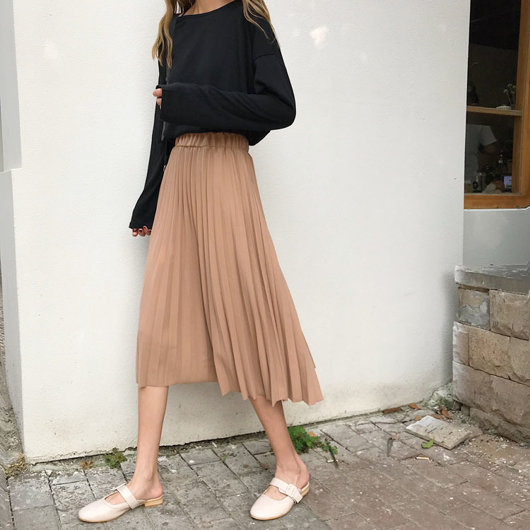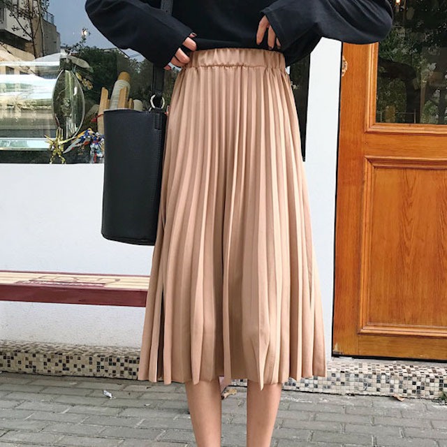 ウエストがゴムで履きやすく、たっぷりのプリーツが動く度にふんわりと揺れて足元を綺麗に演出してくれます。